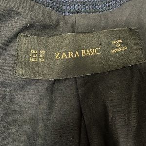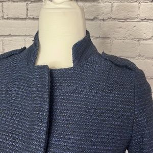 Zara Basic Long Tweed Textured Peacoat Navy Size XS