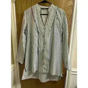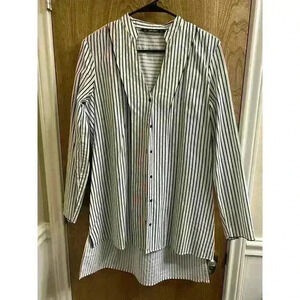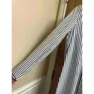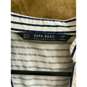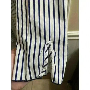 Zara Basic Long White/Navy Stripe Button Asymmetrical Long Sleeve Blouse Size M