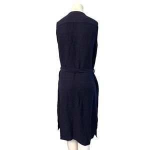 Zara Basic Medium Tie Waist Gold Zipper Dress Navy Blue Sleeveless Side Slits