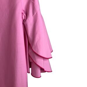 Zara Basic Mini Dress Womens Size Medium Pink Boatneck Ruffle Short Sleeve Barbie Simple Feminine