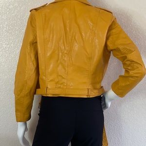 Zara Basic Mustard Yellow Cropped Vegan Leather Biker jacket