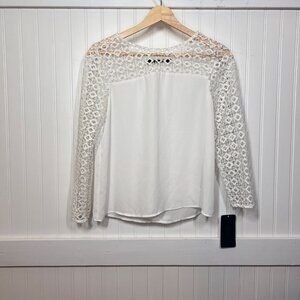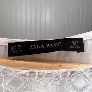 Zara Basic NWT XS White Lace Blouse Long Sleeve Diamond Retro