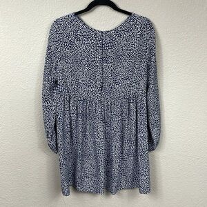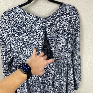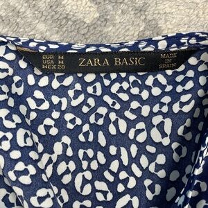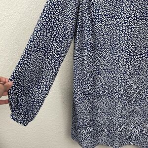 Zara Basic Navy Blue White Animal Leopard Print Long Sleeve Shift Dress Sz M
