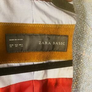 Zara Basic Navy Lambswool Tweed Blazer Elbow Patches XS Preppy Academia Career