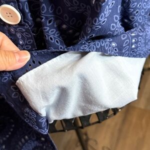 🎨 Color/Pattern: Navy blue with white floral/boho print