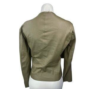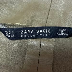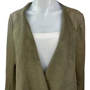 Zara Basic Olive Green Faux Leather Suede Vegan Drape Biker Coat Jacket Size L