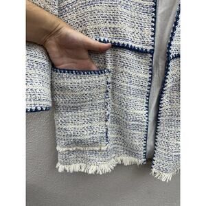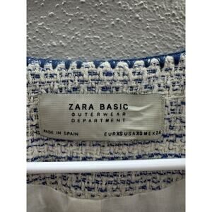 Zara Basic Outerwear Womens Coat Size XS White Blue Tweed Open Front Lined