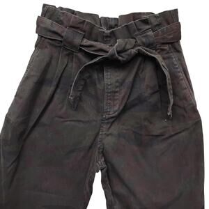 Zara Basic Paperbag High Rise Camo Pants Size 2 Dark Gray Belted Zipper Closure