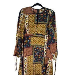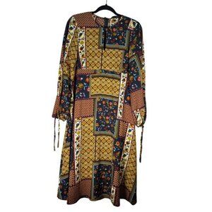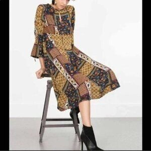 Zara Basic Patchwork Printed Midi Dress With Quarter Sleeves & Tie Details