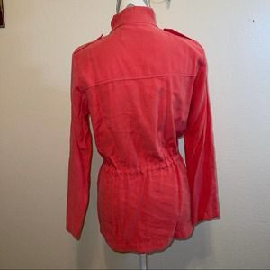 Zara Basic Pink Salmon Solid Zip Cargo Pocket Lightweight Utility Jacket Small