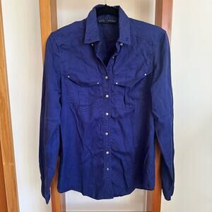 Zara Basic Royal Blue Button-Down Lyocell Shirt Small