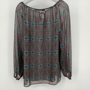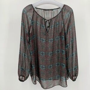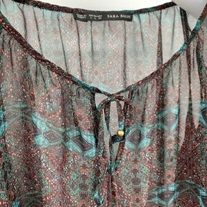 Zara Basic Semi Sheer Peasant Boho Blouse Browns