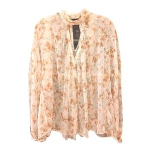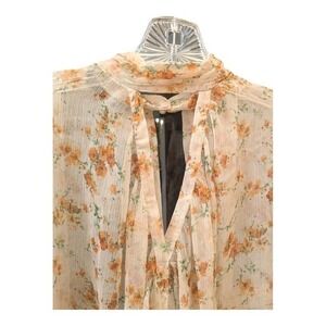 Zara Basic Sheer Orange Floral Long Sleeve Blouse Top Size Small