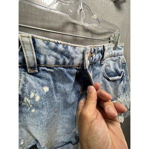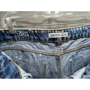 Zara Basic Shorts Womens 08 Blue Distressed Pocketed Zip Belted Ladies.