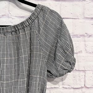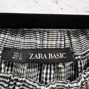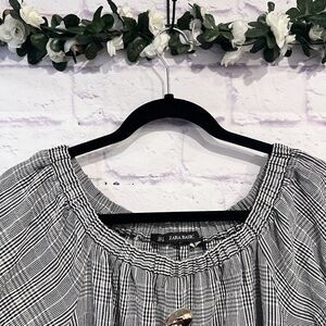 Zara Basic Size Small Plaid Off The Shoulder Puff Sleeve Mini Belted Dress