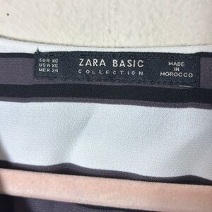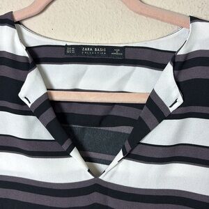 Zara Basic Striped White Black Grey V-neck Blouse Top size XS