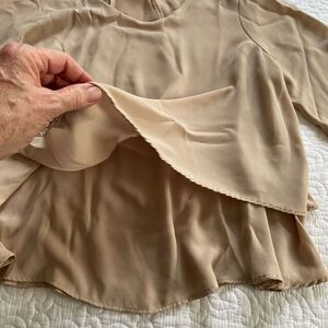 Zara Basic Tan Layered 3/4 Sleeve Boxy Flowy Chiffon Blouse Size XS