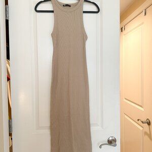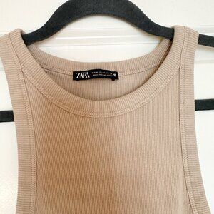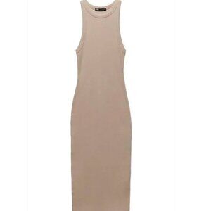 Brand: Zara Size: Medium Color: Tan Condition: Light Wear Material: Ribbed Features: * Midi * Halter Neck