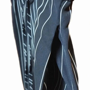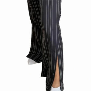 Dark Navy and White striped wide leg pants with knee high slits on both legs. Thin Striped. Draw Strings. Stretchy waist. 2 side pockets.