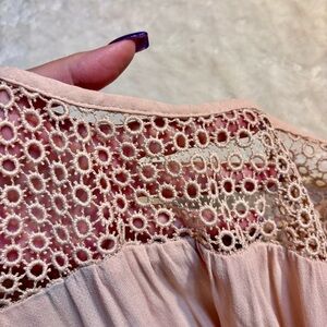 Pale Pink Sleeveless Tunic with a Boho design of Eyelets Trimming the upper part and in thin Trim down the back and both sides.