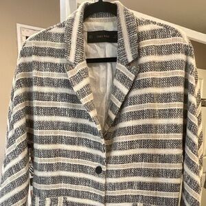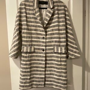 Zara Basic Trench Coat Striped Knit Lightweight With Pockets 3/4 Sleeves. Loose Relaxed Fit. Size.Small 3/4 length sleeves