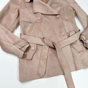Zara Basic Trench Coat Womens Medium Light Pink Belted Double Breasted