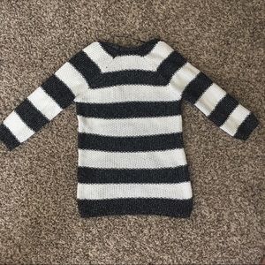 Navy and White striped sweater by Zara. 3/4 sleeves. Navy yarn has a little bit of a metallic look to it. Good used condition. See photos.