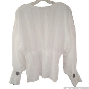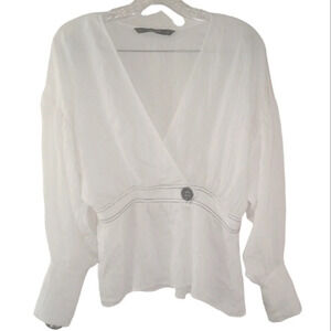 Zara Basic White 3/4 Sleeve Oversized Button Detail Surplice Top Size Medium