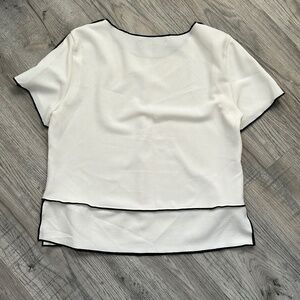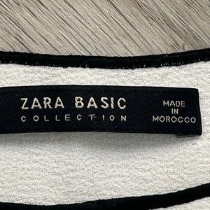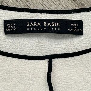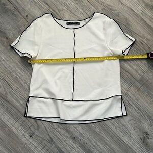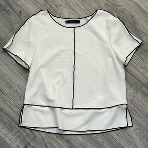 Zara Basic White Blouse w/Black Outline Sz L