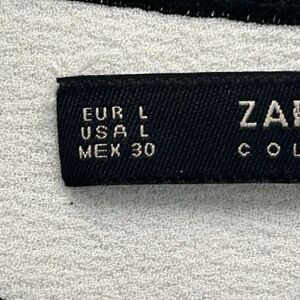 Zara Basic White Blouse w/Black Outline Sz L Pre Owned in Good Condition #2120