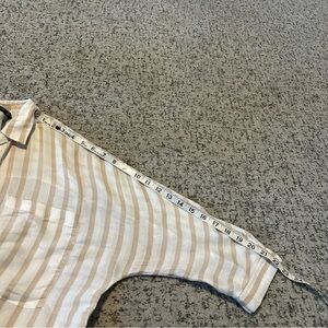 Zara Basic White & Tan Stripe Button Up 3/4 Sleeve Lightweight Blouse Size Small