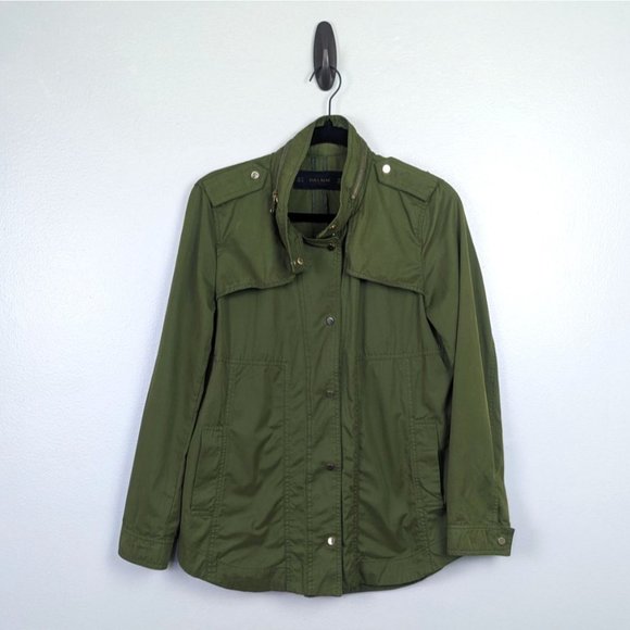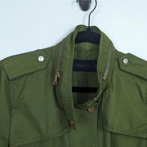 Zara Basic Women Army Green Snap Front Parka Jacket Lightweight