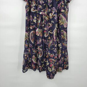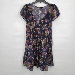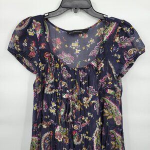 Zara Basic Women Blue Sheer Short Sleeve Square Neck Floral Mini Dress Size S