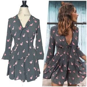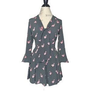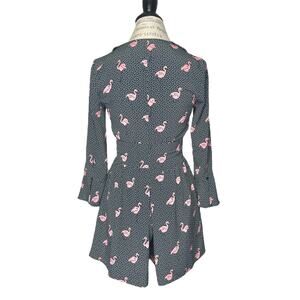 Zara Basic | Women | Flamingo Polka Dot Print Tie Neck Short Romper | Size XS
