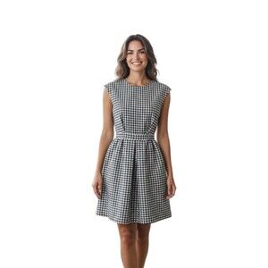 Chic and timeless, this Zara Basic black & white gingham dress is a wardrobe essential. Designed with a flattering fit & flare silhouette, it features cap sleeves, a round neckline, defined waist, and flared skirt. The side zipper provides comfort and style, while the classic gingham check pattern makes it perfect for summer days, casual outings, or office chic.