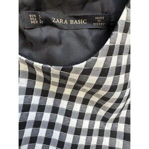 Zara Basic Women’s Black White Gingham Check Dress Size L Fit & Flare