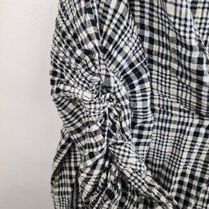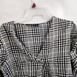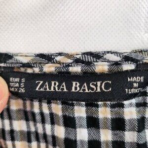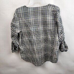 Zara Basic Womens Blouse Top Small Beige Black Plaid 3/4 Sleeve Preppy Academia