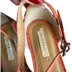 Zara Basic Women's Coral orange and Black snakeskin Strappy Sandals sz 37 Boho