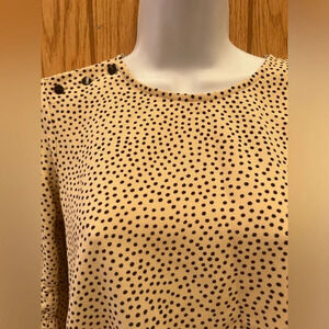 Zara Basic Women's Cream & Black Polka Dot Peplum Flared Sleeve Blouse. Size xs