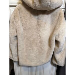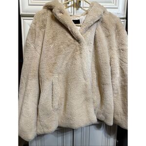 Zara Basic Women's Faux Fur Teddy Plush Oversized Hooded Jacket Tan XS NWOT