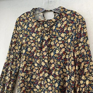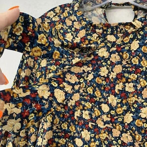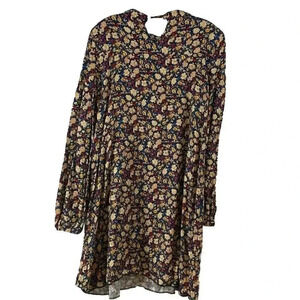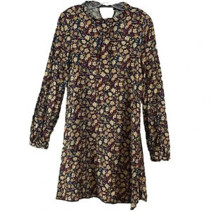 Zara Basic Women’s Floral Mini Dress With Tie Neck Size Small Long Sleeve