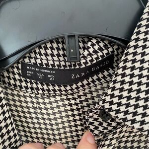 Zara Basic Women’s Houndstooth Women’s Button Front Sheer Long Sleeve Blouse XS