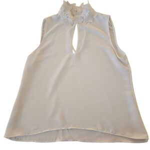 Zara Basic Women's Lace & Pearl Trim Sleeveless Blouse White Size Medium