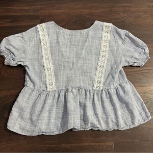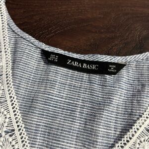 Zara Basic Women's Medium Peplum Blue Top with Lace Detail