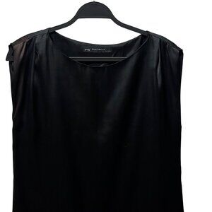 This Zara Basic dress combines sophistication with contemporary design, featuring a satin finish, sleeveless cut, and pleated hemline for a stylish silhouette.