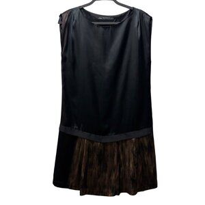 Zara Basic Womens Satin Dress With Pleated Hemline Black Size L Made in Spain