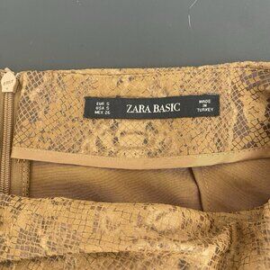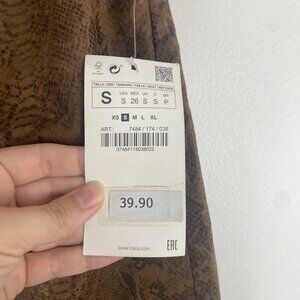 Zara Basic Women's Snakeskin Print Midi Skirt Size S Brown Faux Suede NWT