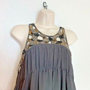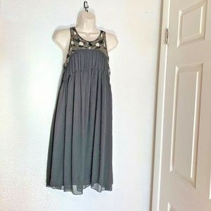 Zara Basic Womens Sz S Brown Dress Bling Collar A Line Knee Length Lined Sheer L