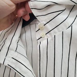 Zara Basic Women's White Black Pinstripe Cotton Blend Long Sleeve Dress Shirt L