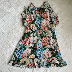 Zara Basic | Z1975 Denim Floral Halter Ruffle Sleeveless Mini Dress | Size Large